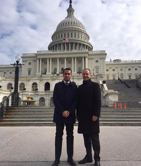 Volevamo stupirvi con effetti speciali, invece…siamo alle solite. Purtroppo. Mentre scriviamo Luigi Di Maio è in Usa, in realtà è lì già da qualche giorno il che ci permette di analizzare le circostanze di questa ennesima sodomia coloniale italiota. Certo, direte voi, il rito del “viaggetto a Washington” del possibile futuro titolare di Palazzo Chigi è un rito consolidato dal ’47 (lo inaugurò De Gasperi con il famoso cappotto prestato dall’amico Dc Attilio Piccioni), e proseguito con una sequela di trasvolate che vanno da Occhetto e Fini – i pericoli rossi e neri che andavano sventati – fino a Napolitano, quest’ultimo quasi uno stalliere della Casa Bianca. Ma se quelle visite potevano destare un certo imbarazzo a democristiani, comunisti e postfascisti degli anni ’90, Di Maio, al contrario, in Usa ci è andato con il piglio di uno scolaretto entusiasta con lo zainetto pieno di compitini da far vedere al maestro. Lo stile è sempre quello da primino della classe perfettamente sbarbato e non cambierà mai – è Di Maio che ci volete fare mica uno statista – ma ciò che rileva è il contenuto delle dichiarazioni e incontri sin qui trapelati. Già nelle riunioni preliminari traspare l’intento della gita scolastica: «Basta con questa storia della Russia e che siamo alla mercé di Putin – ha dichiarato – non sta in piedi e ci fa solo del male». Segue una cena con l’ambasciatore Armando Varricchio (quello nella foto-ricordo), accompagnato dal capo della comunicazione Rocco Casalino e dal consigliere politico Vincenzo Spadafora, a cui si deve molto della ribalta internazionale del candidato premier del M5S. E si passa al piatto forte del viaggio: oltre un’ora di colloquio con Conrad Tribble, vice assistente segretario di Stato per l’Europa occidentale (il nostro cane da guardia insomma), meeting del quale trapelano stralci e indiscrezioni che lasciano ben poco spazio alla fantasia. La prima precisazione è sulla Nato: «Non vogliamo uscire», tuona Di Maio. A settembre aveva quantomeno detto no all’innalzamento al 2% del Pil come contributo italiano all’Alleanza Atlantica (come richiesto da Trump). Ora sembra aver cambiato idea: «Non diciamo no ma abbiamo perplessità che si utilizzino 14 miliardi in più solo in armamenti. Spendiamoli in intelligence e tecnologie…». Della serie cambiamo la voce di spesa e il gioco è fatto. Stessa solfa sulla missione afgana dove Di Maio sembrava per un istante folgorato da un impeto craxiano…quasi una folata dello spirito di Sigonella: «Se andremo al governo ritireremo il contingente!!». E qui non facciamo in tempo a fargli la ola, che siamo subito raggelati dall’immediato e immancabile “ma”…«Ma confermiamo la nostra partecipazione alle missioni di pace(!!)». Cioè, basta cambiare la ragiona sociale, il “brand” della missione, e il M5S si rimangia l’impegno del ritiro dei contingenti militari italiani all’estero, voluti lì dagli Usa. Sarebbe stato più serio sostenere di credere fermamente nell’opportunità delle guerre Usa, come in passato fecero Oriana Fallaci, la Bonino e Ferrara che nascondersi ignobilmente dietro regole di ingaggio, cornici internazionali e presunti umanitarismi. Forse un personaggio mediamente scolarizzato che colloca senza tentennamenti Augusto Pinochet in Venezuela non sa che dall’intervento in Vietnam gli Usa non hanno mai più definito “guerra” una loro missione militare. Gli interventi americani sono sempre umanitari, operazioni anti terrorismo o sostegno alle opposizioni democratiche, se si cerca un pretesto semantico per mantenere i soldatini italiani in Afghanistan non c’è che l’imbarazzo della scelta, la sinistra italiana di lotta e di governo può dargli lezioni. Poi si giunge alla questione elettorale: «Ma se non fate alleanze come pensate di governare?», chiede l’interlocutore americano, arcigno e diffidente. E qui viene tradito un altro dogma del movimento – zero alleati. «Se non avremo la maggioranza assoluta – risponde allusivo – ci assumeremo la responsabilità di non lasciare il Paese nel caos». Già si vede all’orizzonte la faccia compiaciuta di Bersani nell’inedita e insperata veste di garante degli equilibri atlantici in un governo 2018 zeppo di tecnici con il movimento di Grillo posto sotto tutela, fuori dai ministeri chiave ad occuparsi solo di pale eoliche, startup, auto elettriche e cantieri da aprire con Renzo Piano. Con tanti prati verdi a circondare la bandiera americana. La proposta di eliminare le sanzioni contro Mosca è stata nel frattempo derubricata a mera questione commerciale per favorire l’export italiano e il ragazzo di Pomigliano nella medesima sessione di incontri ha anche ribadito che non desidera un’Italia fuori dall’Ue ma solo rivedere i trattati europei (con il permesso della Merkel magari?).